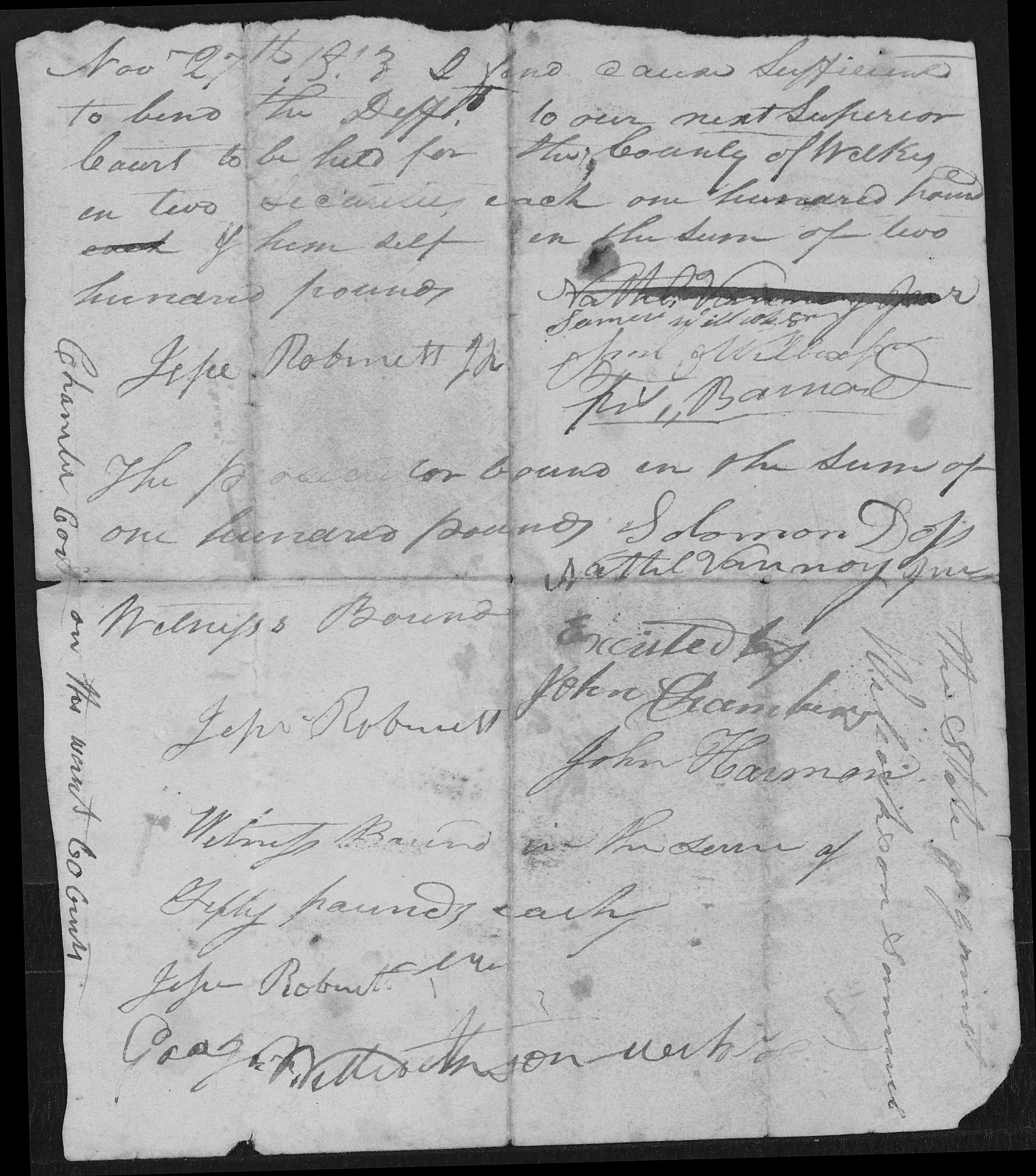 sum of one hundred pounds. Solomon Doss Nathaniel Vannoy Jnr Witnesses bound in the sum