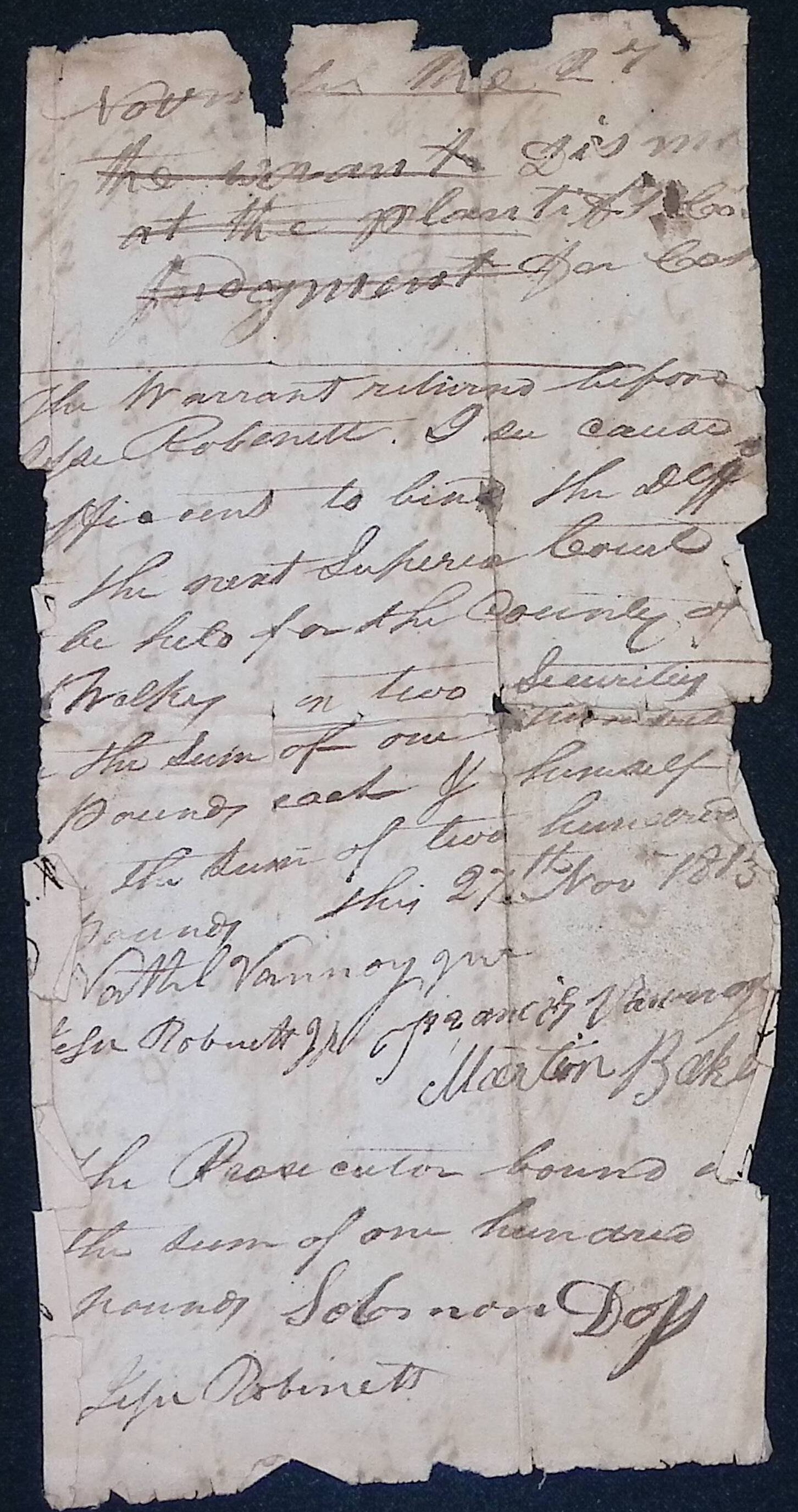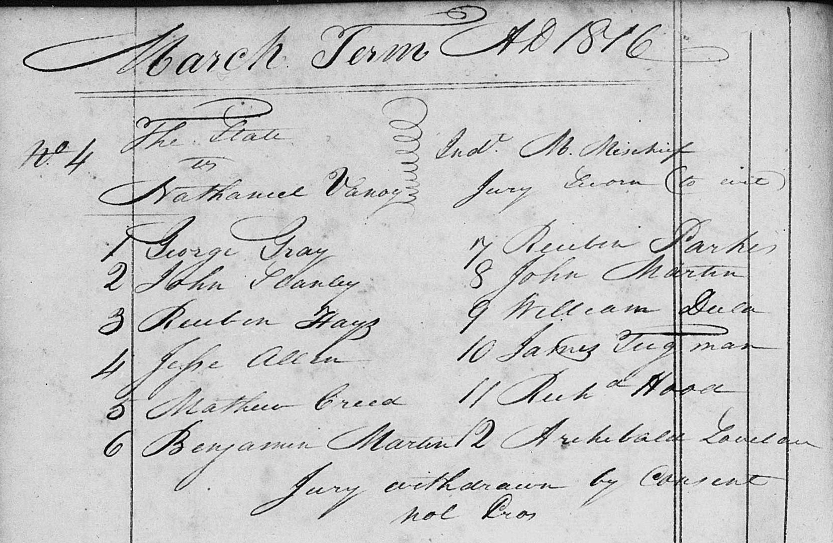 Superior Court which was held twice a year in March and September. I checked the court minutes for 1813 and