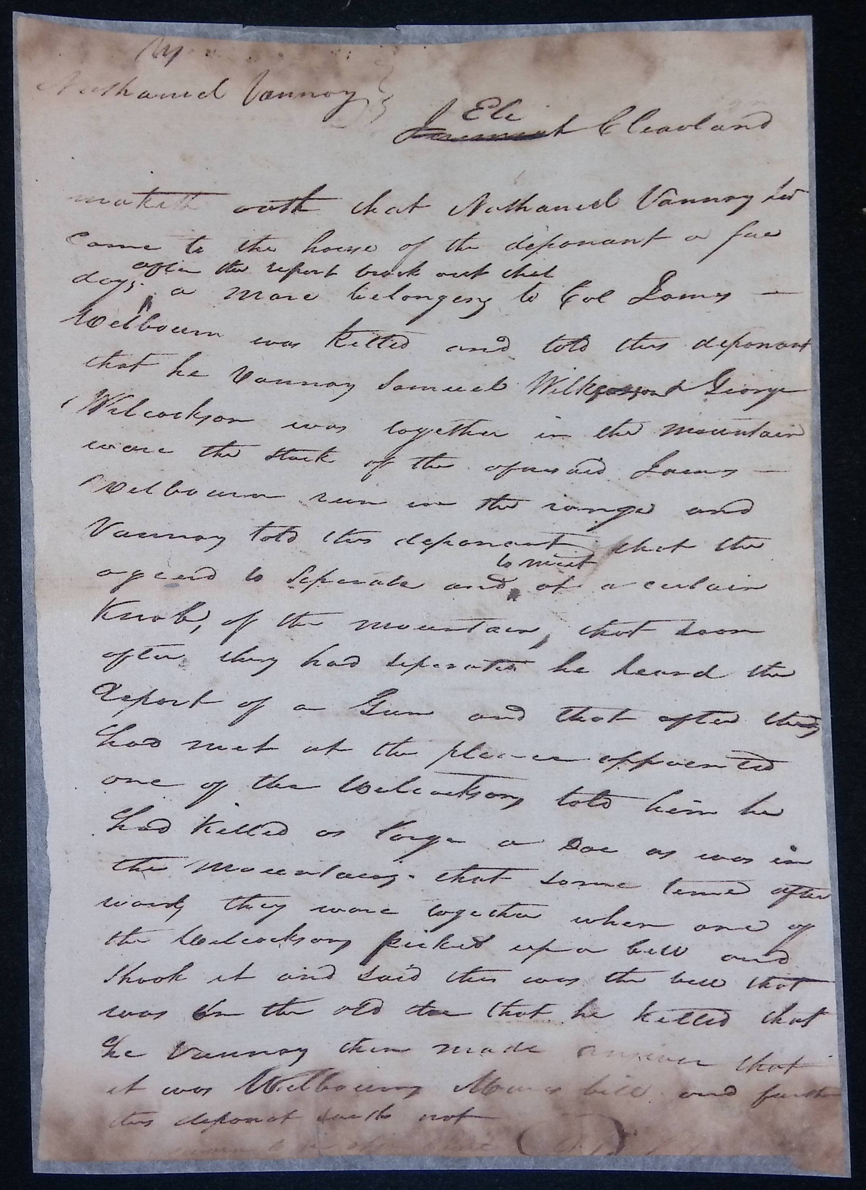 November 27, 1813, complaint. An undated deposition by Eli Cleveland fills