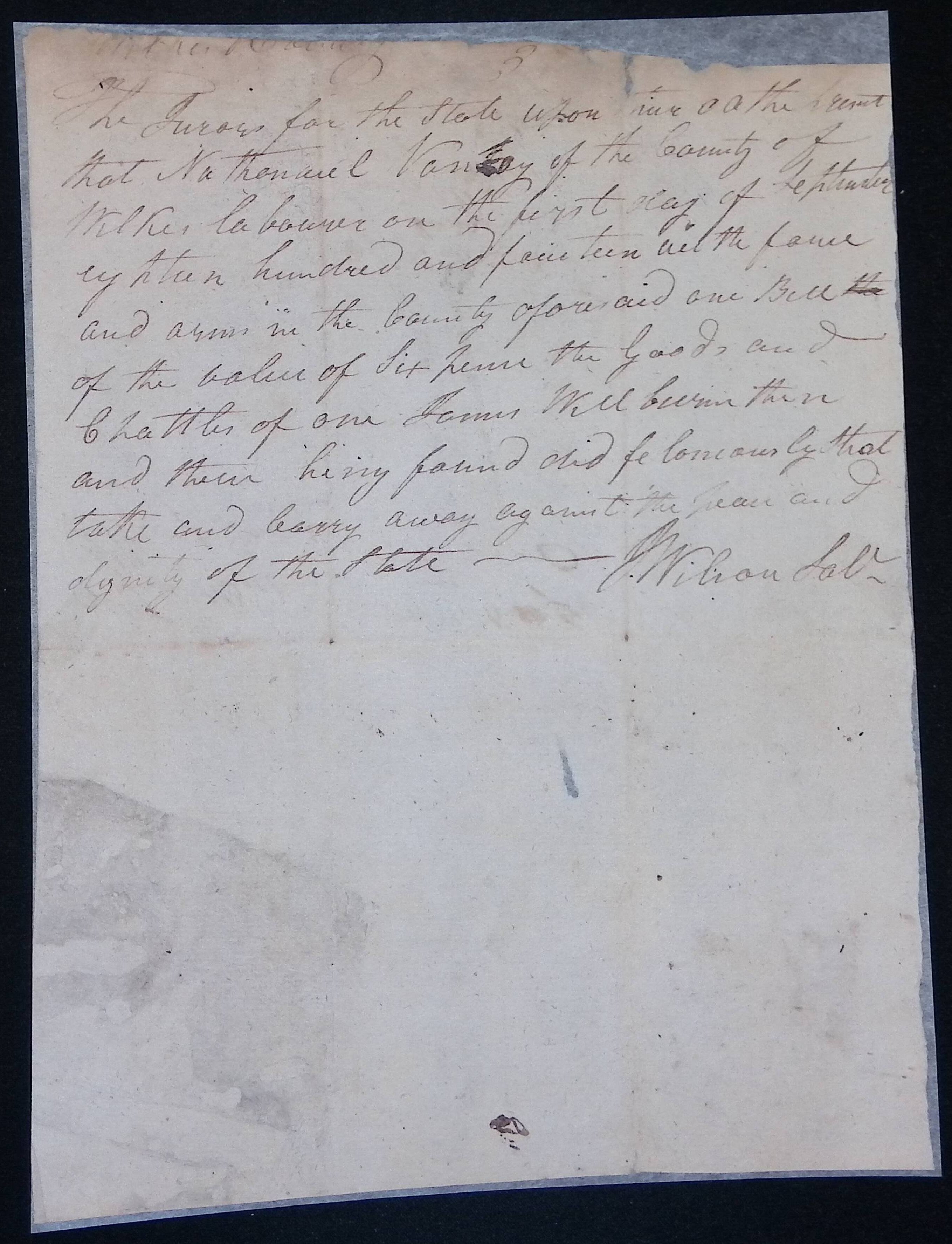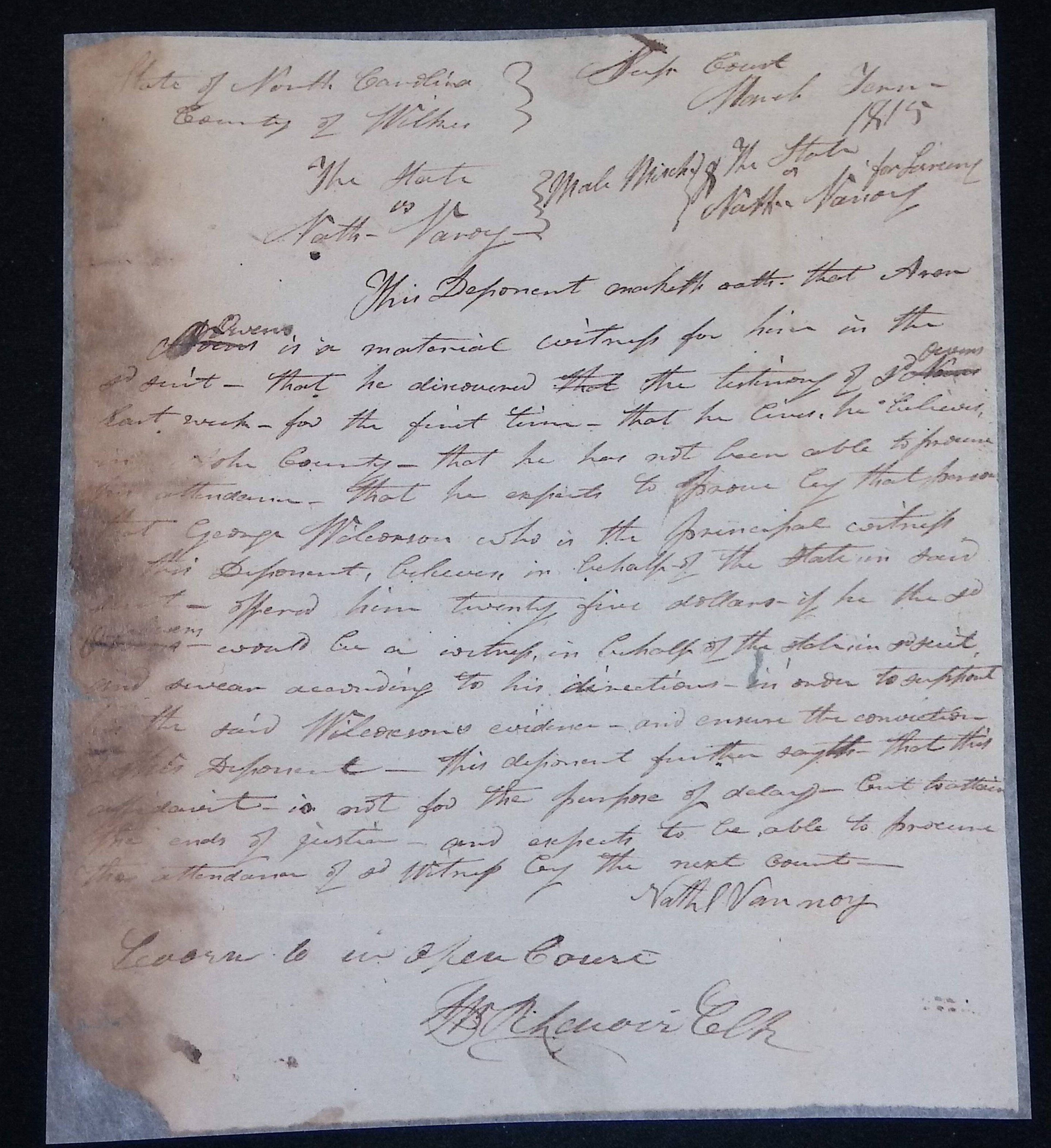 behalf of the state Nathaniel Vannoy Jnr. The back of the page is dated November