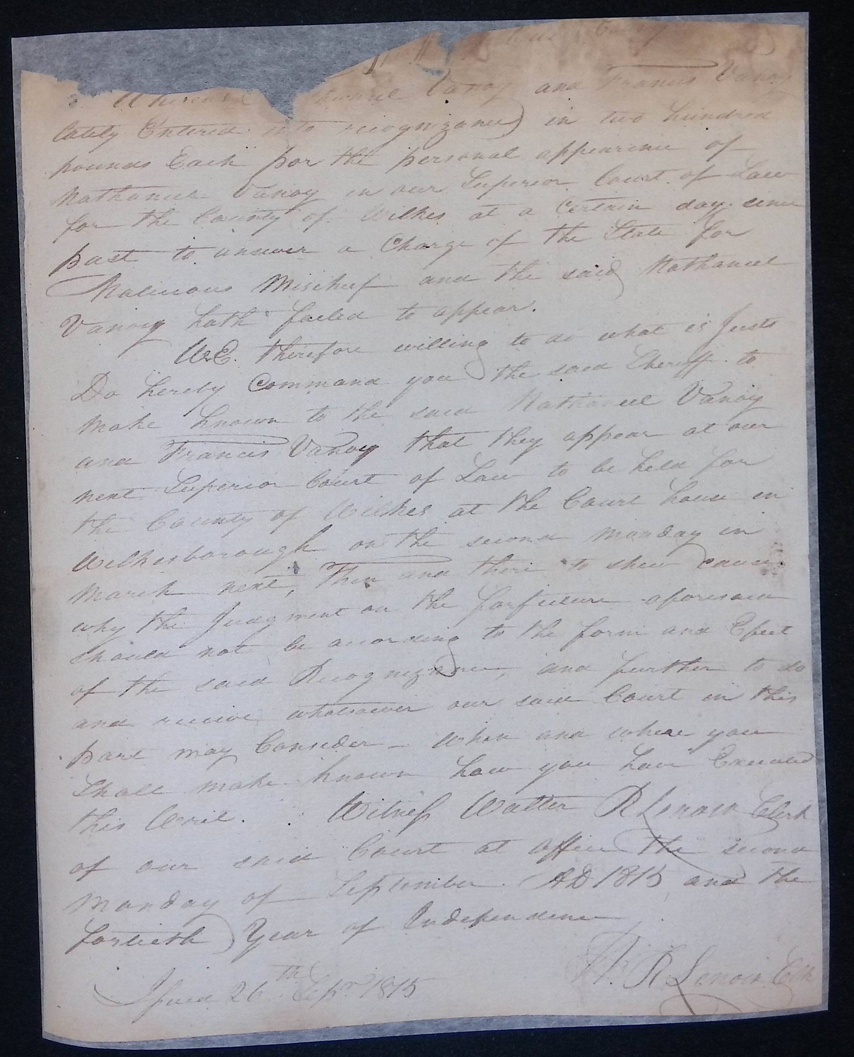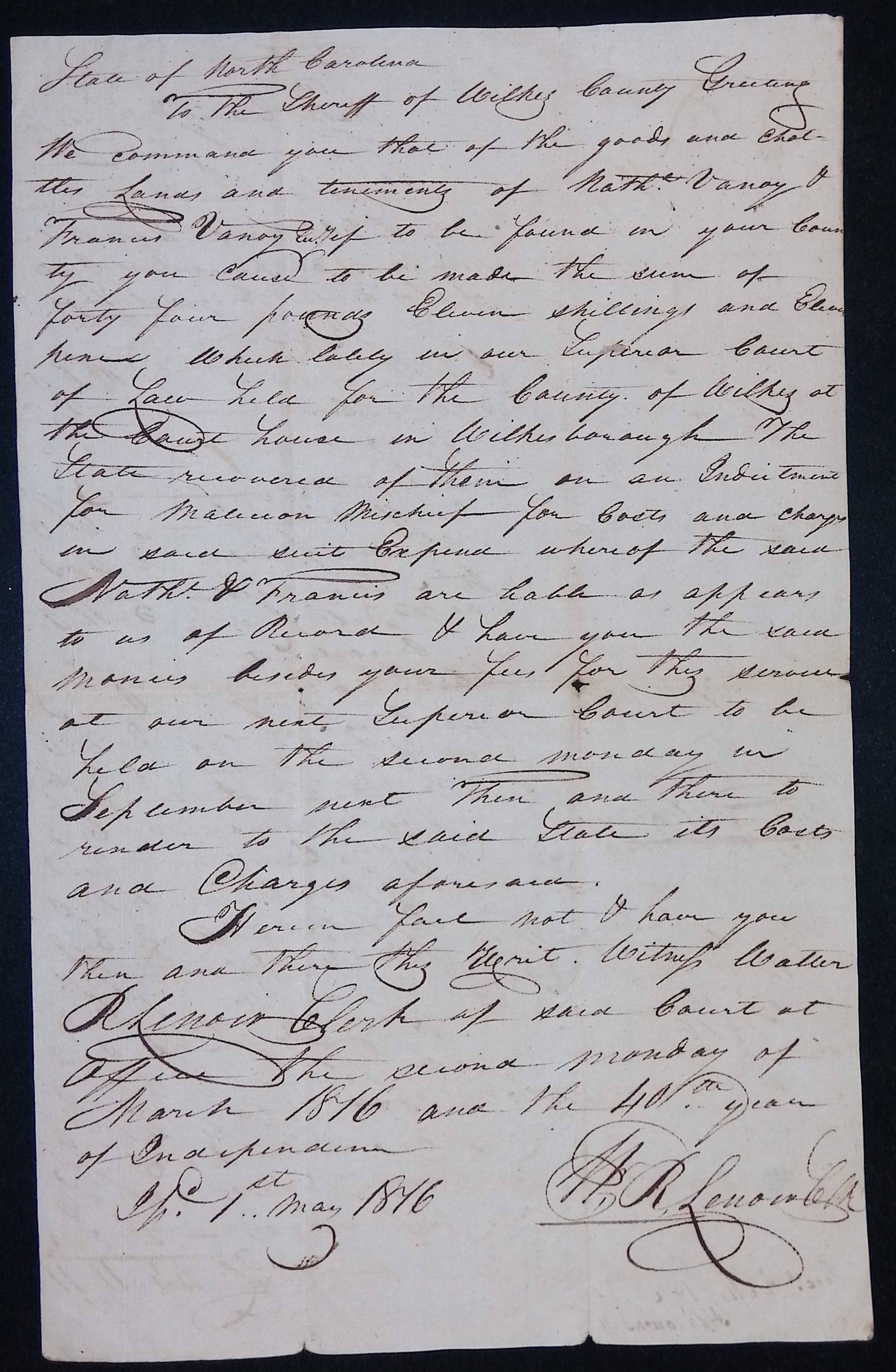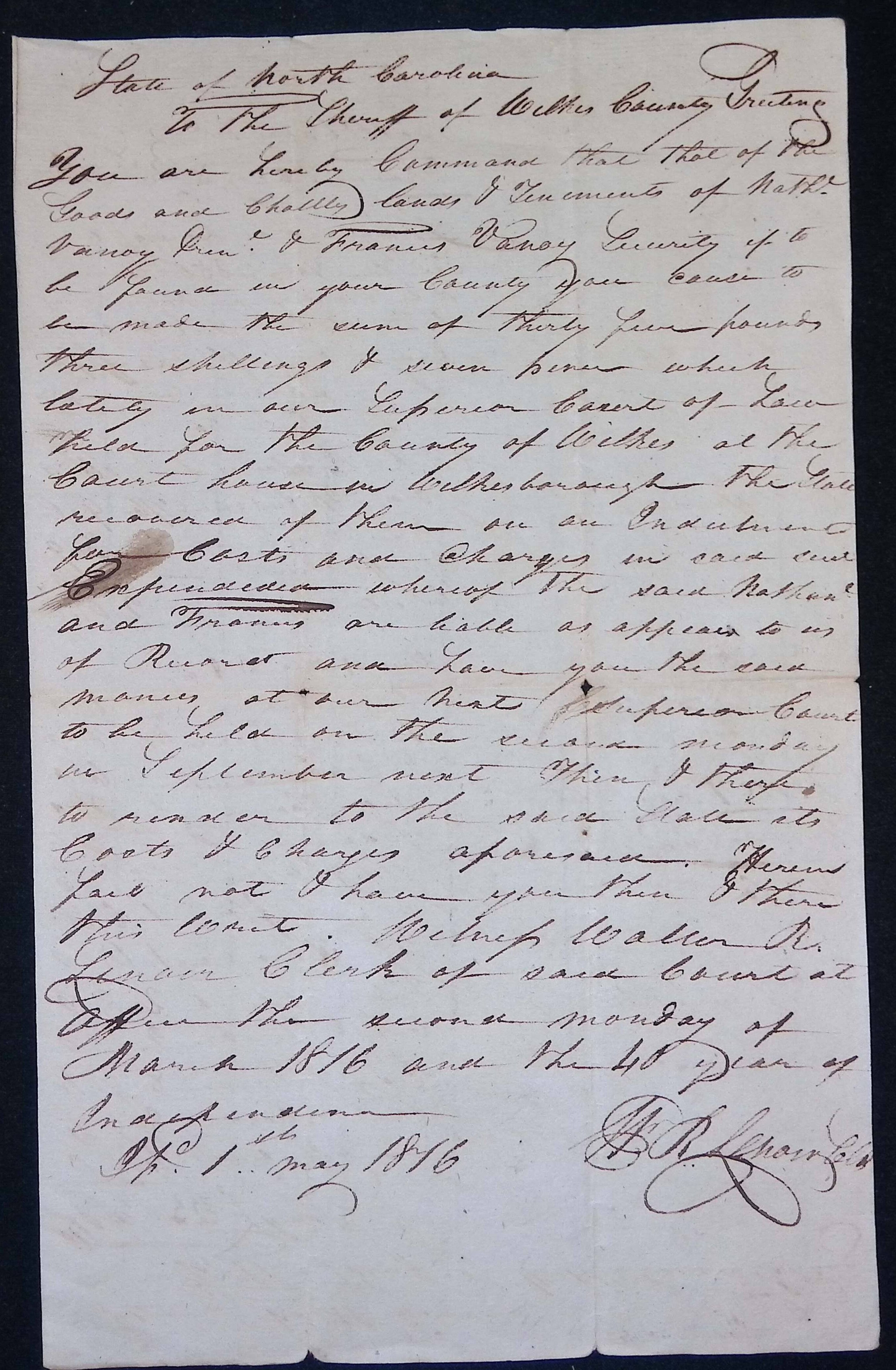 Wilkes County against Nathaniel and Francis Vannoy for the sum of