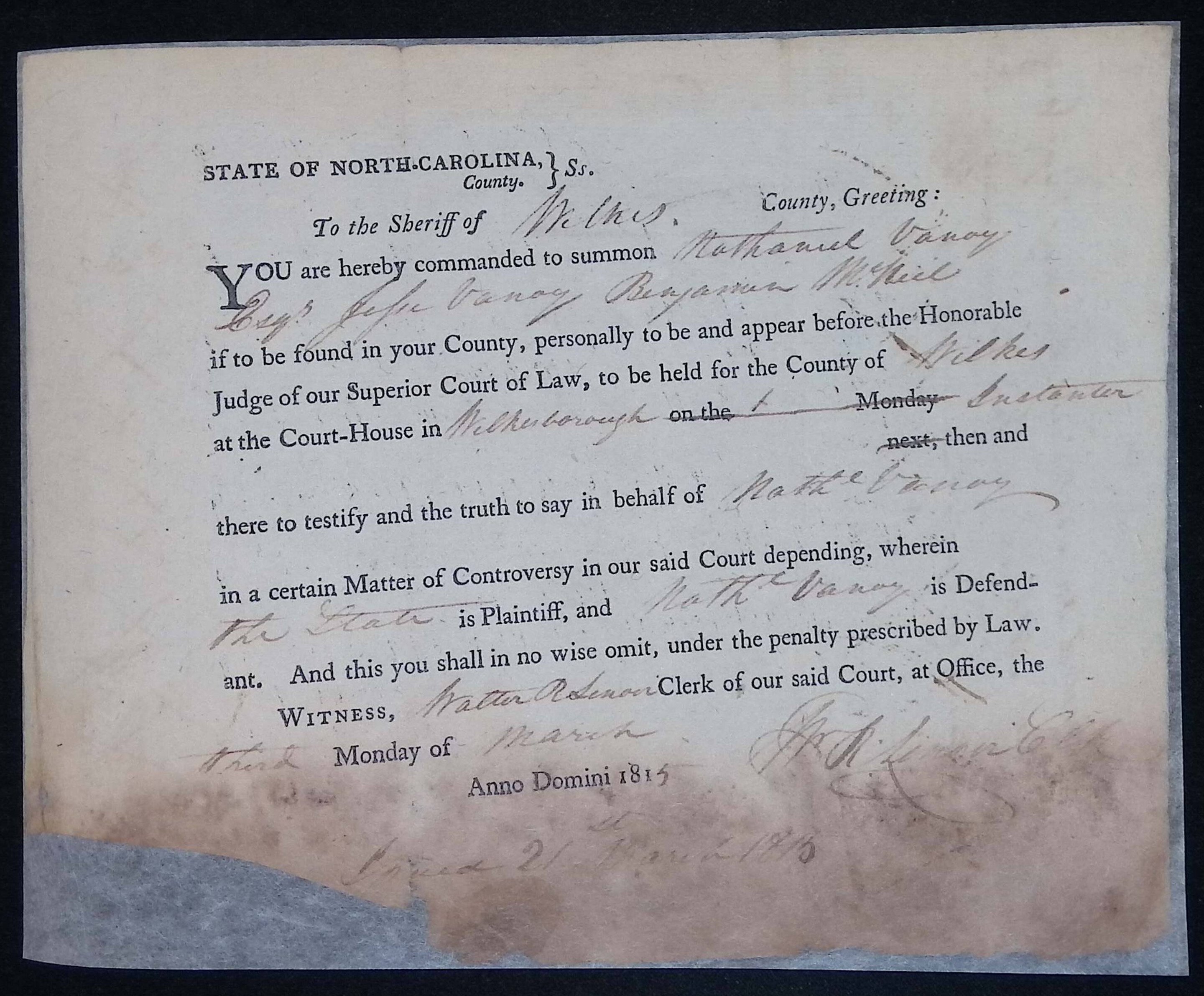 Nathaniel Vannoy. Our story begins in October 1813 near