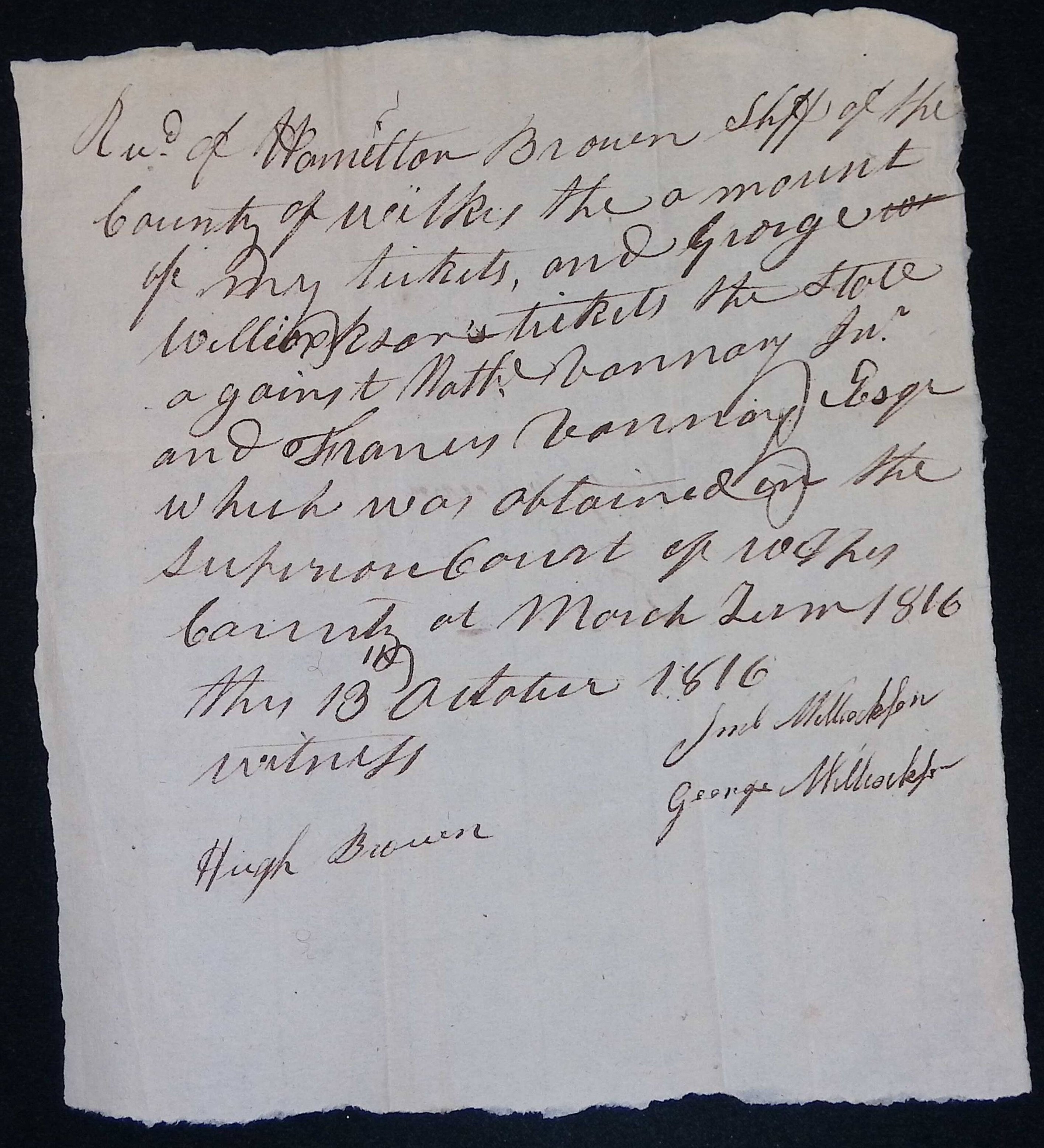 February 2, 1820, the transaction occurred in 1816. Hamilton Brown’s term as sheriff ended in