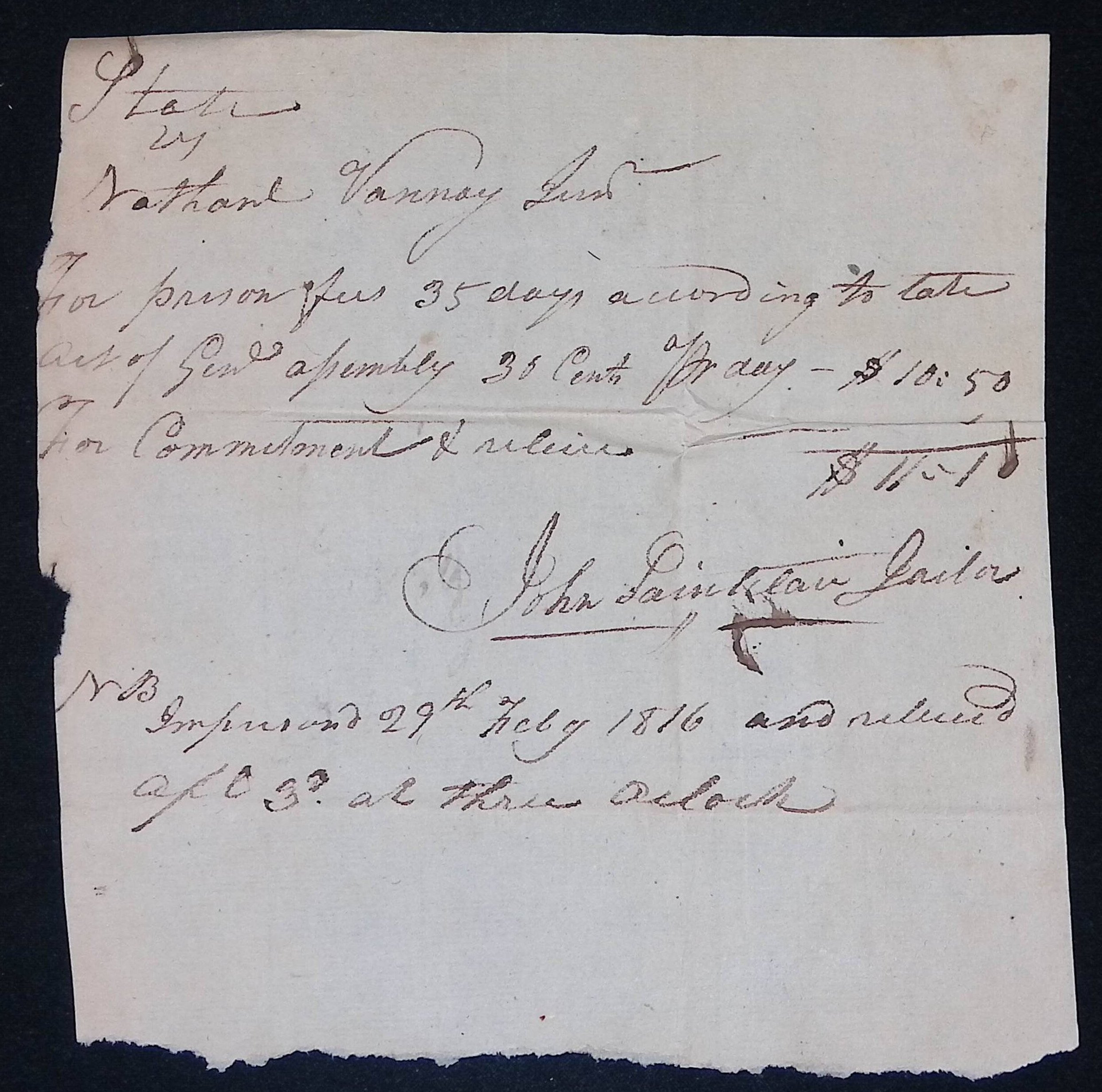 imprisoned from February 29, 1816, until April 3 when he was released at 3pm. Click to view the jailer’s